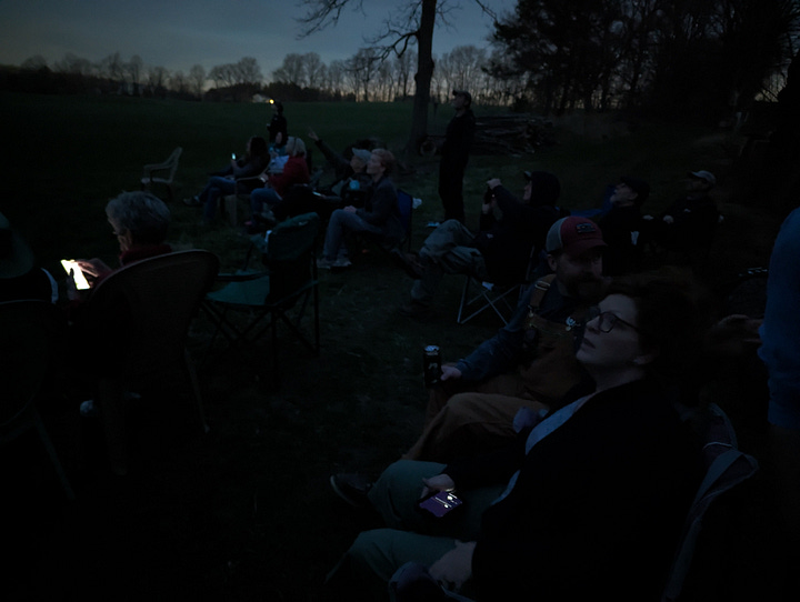 The darkness seemed to sweep over us so suddenly. The spring peepers started singing.