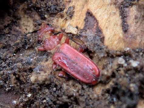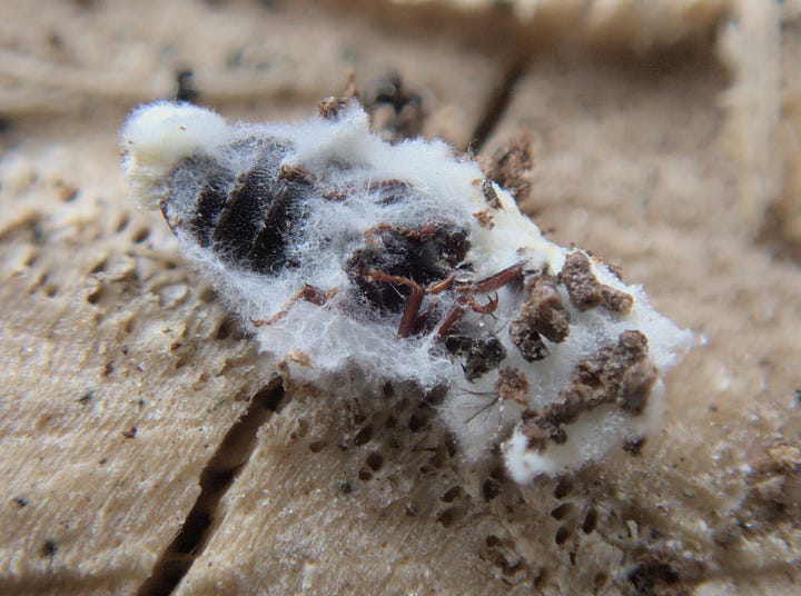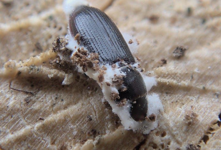 We also found a beetle that had been eaten by an entomopathogenic fungus. I focus stacked these in Helicon.