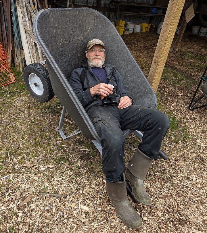 I like this wheelbarrow photo so much. I may have to do something artsy with it. Also I remember my grandpa sitting in wheelbarrows like this sometimes. It must be ancient wisdom handed down through the generations. Maybe someday when I finally build my yurt or strawbale house I shall furnish it with wheelbarrow chairs.