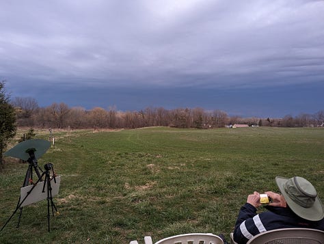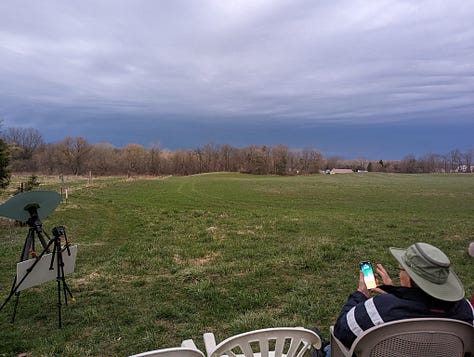We watched the weather obsessively for weeks before April 8, even before you could see the day on the forecast. We crossed our fingers and tried to will the little weather graphics to show us a clear day. It seemed like it could have happened. April 7 was clear and beautiful. April 9 was clear and beautiful. The morning of April 8 had some clear moments but by the afternoon it the sky was thick with clouds.