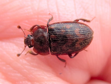 My cousin Heather and I pried bark from dead ash stumps to look for bugs while we waited for the darkness. We found some great stuff.