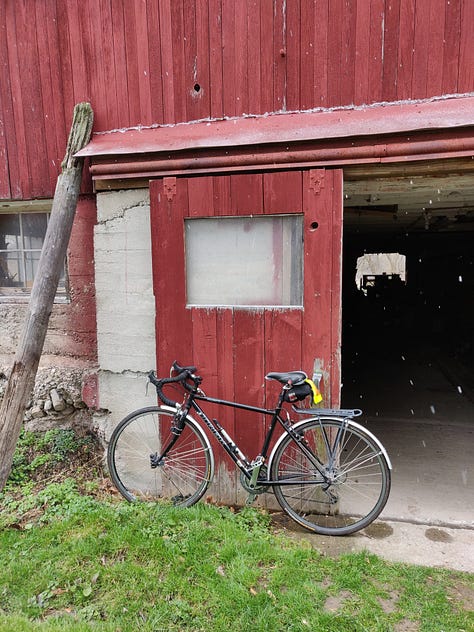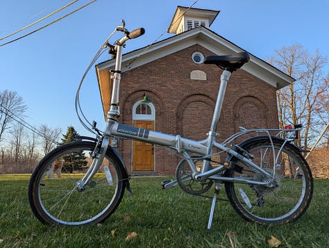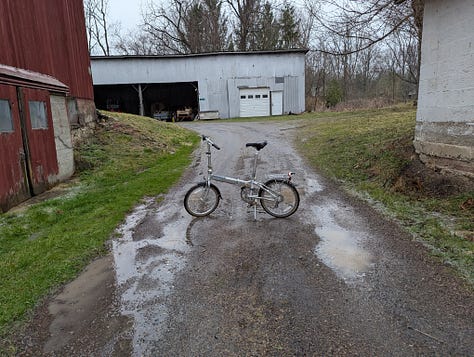 It’s April 4 and I’ve gotten the tires pumped up on two of my bikes and gone out for a short ride every day, one in the rain, one in the wind, one in the cold, and today was kind of a nice average of the rest. I rode the folding bike 2 days and my touring bike 2 days.